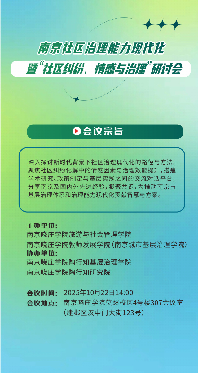 (研讨会预告)南京社区治理能力现代化暨“社区到纷,情感与治理”研讨会