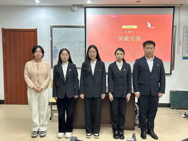 新接收的预备党员面向党旗庄严宣誓,坚定表达了全心全意为人民服务的决心和为共产主义事业奋斗终身的信念。党支部书记向新接收的预备党员表示祝贺,并为其佩戴党员徽章,同时提出期望:要始终坚守入党初心,牢记党员使命,切实履行党员职责,以党员标准严格要求自己。