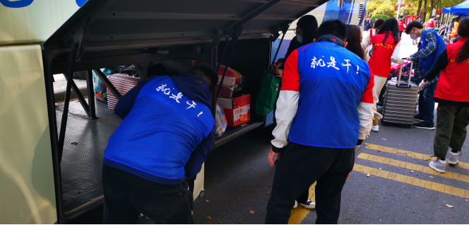 4月14日下午学院进行了专门培训;15日全天,近50名志愿者身着旅社院“就是干”的蓝色马甲,在学校西门和北门为返校同学提供服务,在校外志愿者的引导下,返校同学有序排队等待、查验苏康码、红外测温、审核返校码进入校园;同时校内志愿者协助搬运行李,门口接驳车流水发车。志愿者的服务工作受到同学们的好评。