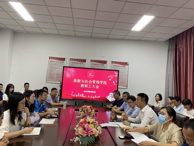 2022年9月6日下午1:30,旅游与社会管理学院在文南201会议室召开全院教师大会,会议由学院党总支书记吴鑫主持。