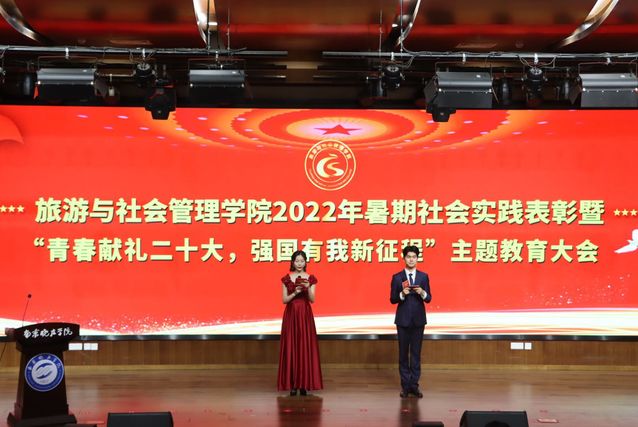 10月26日晚18:00,旅社院在工科楼报告厅举办了2022年暑期社会实践表彰大会暨“青春献礼二十大,强国有我新征程”主题教育大会。出席本次活动的有旅游与社会管理学院党总支书记吴鑫、院长李昌庚、党总支副书记副院长孙景荣以及我院各专业老师、行政人员和学生代表。