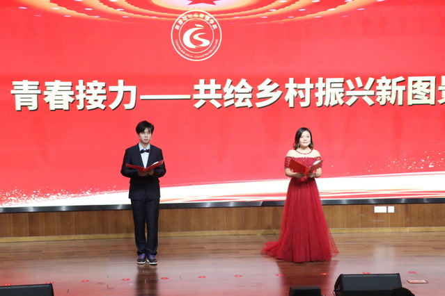 大会第一项为实践成果展示。共三个篇章,三个篇章皆以青春为主题,翻开旅社院暑期实践新篇章。第一篇为“青春向党——传承行知大爱新精神”。第二篇为“青春接力——共绘乡村振兴新图景”。第三篇为“青春奋进——续写爱国奉献新篇章”。大会第二项:旅社院党总支副书记、副院长孙景荣宣读表彰文件。各个老师代表为为校级优秀团队的学生代表、院级优秀团队的学生代表、校级先进个人代表、院级先进个人代表、旅游资源学暑期实践获奖团队的学生代表、暑期社会实践优秀指导老师、2021-2022学年优秀班主任颁奖。大会第三项:由旅社院院长李昌庚宣读新一届专业负责人和教研室主任名单,并由旅社院党总支书记吴鑫颁发聘书。大会第四项:由旅社院团委书记周雅雯宣读第十一届团委、学生会干部名单,并颁发聘书。大会第五项为学生代表孙樱芝发言。孙樱芝同学紧紧围绕旅社院“就是干”的精神进行发言,深刻阐述了奋斗拼搏在当代青年的成长及学习过程中的重要作用,并对暑期的社会实践进行总结。大会第六项为教师代表董红艳老师发言。董红艳老师堆我院本次暑期社会实践活动表示充分的肯定,并对实践团队的指导老师和成员们的辛苦付出予以赞美。同时,董老师也希望同学们能够继续前进,踔厉奋发迈向新的征程。大会第七项为旅社院党总支书记吴鑫发表讲话。吴鑫老师充分肯定了今年的暑期社会实践,强调了我院对社会实践的重视,阐述了社会实践的重要性并希望望同学们日后积极投身社会实践,不负青春韶华。
