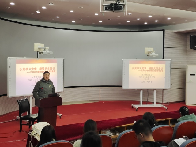 2022年11月17日晚18:30,旅游与社会管理学院关工委刘钦普同志在文北200为2022年下半年入党积极分子讲授党课。本次讲课的主题是《认真学习党章 增强党员意识——中共二十大修改通过的新党章解读》。