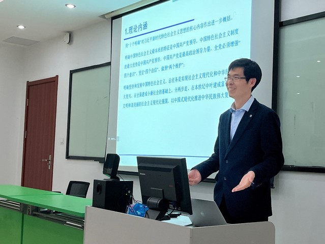 2022年5月3日下午,旅游与社会管理学院党总支副书记孙景荣同志在文南211为2022年上半年入党积极分子讲授党课。本次党课的主题为习近平新时代中国特色社会主义思想。