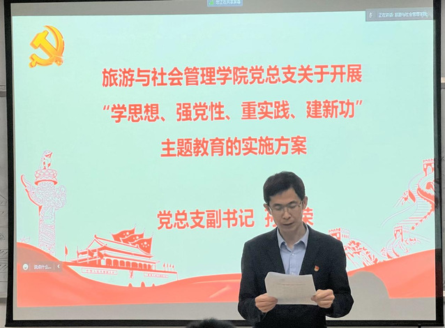 首先,我院党总支副书记孙景荣对学院“学思想、强党性、重实践、建新功”主题教育实施方案进行了解读。孙书记强调要以理论教育四字为中心,开展调查研究;要解决实际问题,重视调研实践。随后,吴鑫书记传达了上级关于学习贯彻习近平新时代中国特色社会主义思想主题教育的相关文件精神,强调要在主题教育全程中切实提高政治站位、把握目标要求、深化重点举措、加强组织统筹。接下来,我院邀请了组织部副部长耿秀梅对本次主题教育提出指导意见,耿部长在讲话中表示要充分理解动员活动的重大意义,准确把握动员活动的主题要求,结合学院特色与实际开展活动,深入调查学习研究。最后,吴鑫书记总结本次会议,呼吁党员紧跟中央部署。在热烈掌声中,吴鑫书记宣布旅社院主题教育正式启动。