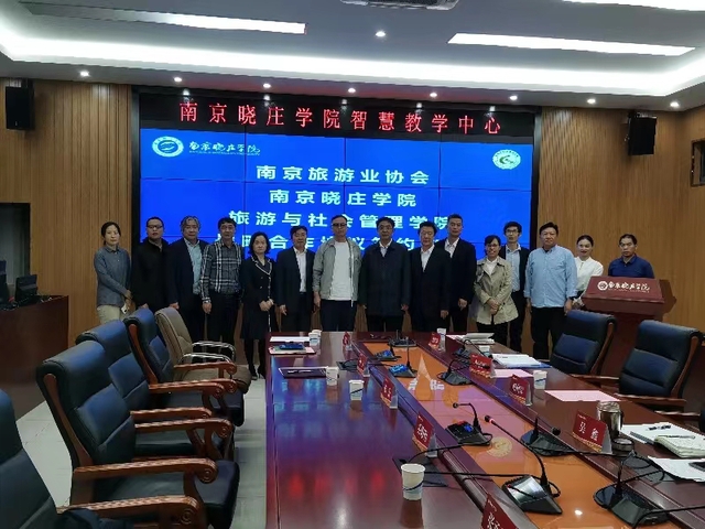 10月24日下午,南京旅游业协会会长张农、中国国旅(江苏)国际旅行社有限公司董事长孙兵、江宁区旅游康养集团副总经理马兆琴等率队调研我校,与旅游与社会管理学院开展战略合作交流座谈。我校副校长赵向军、旅游与社会管理学院党政领导及旅游管理、酒店管理专业相关教师参加了此次座谈。