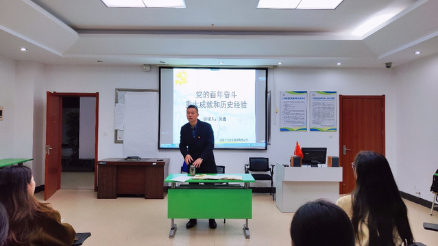 2023年11月16日下午,旅游与社会管理学院党总支书记吴鑫在崇一楼文南213为我院2023年下半年入党积极分子开展党课教学,本次党课的主题是《党的百年奋斗重大成就和历史经验》。